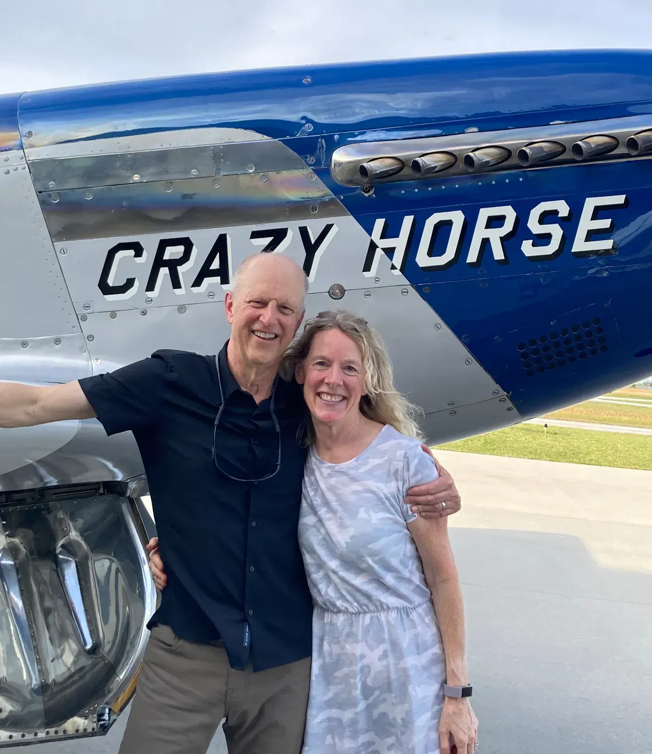 Caroline pegou meu diário de bordo, minha licença e os levou escondido para lá, além de conseguir autorização do pessoal da Duke para que eu pudesse fazer isso. Mas ela fez os arranjos para que eu pilotasse um P-51, um avião da Segunda Guerra Mundial. É o modelo de avião que eu montava quando tinha 8 anos. Sou apaixonado por esse avião desde sempre.