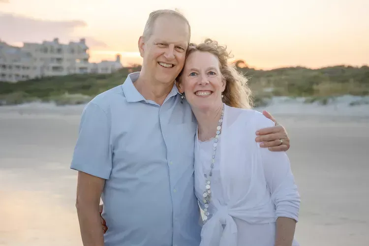 “Sou muito grata por cada momento que passo com este homem”, diz Caroline Graybeal, de 60 anos, que se aposentou do cargo de presidente e gerente geral de uma emissora de notícias local. “Ele é meu porto seguro. Ele me mantém com os pés no chão.”