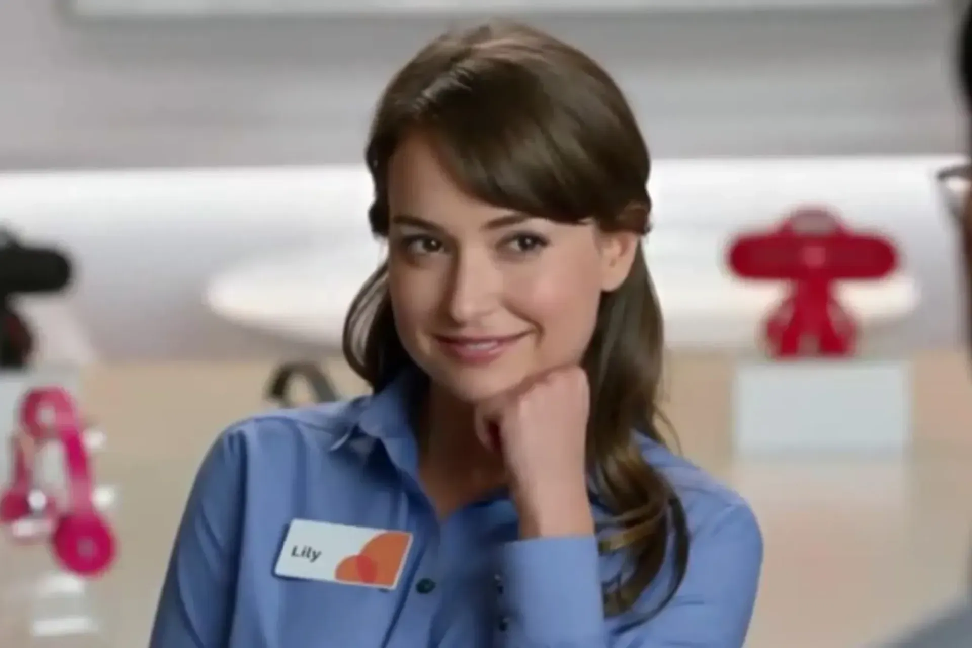 Milana Vayntrub em um comercial da AT&T, Milana Vayntrub em novembro de 2025.