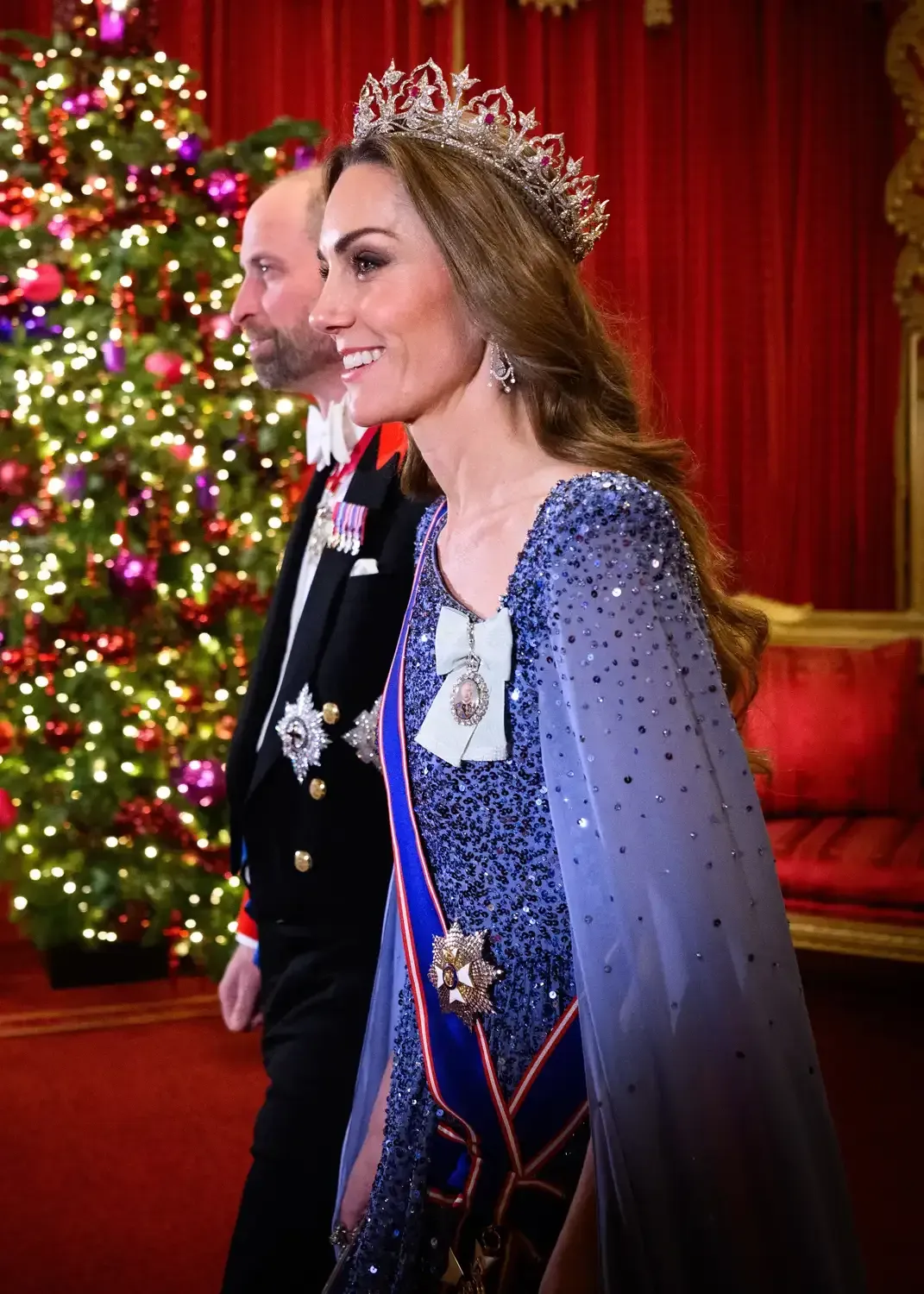 No dia 3 de dezembro, a Princesa de Gales, de 43 anos, fez sua estreia com a Tiara Oriental da Rainha Vitória no banquete de estado no Castelo de Windsor, em comemoração à visita do presidente alemão e da primeira-dama ao Reino Unido.