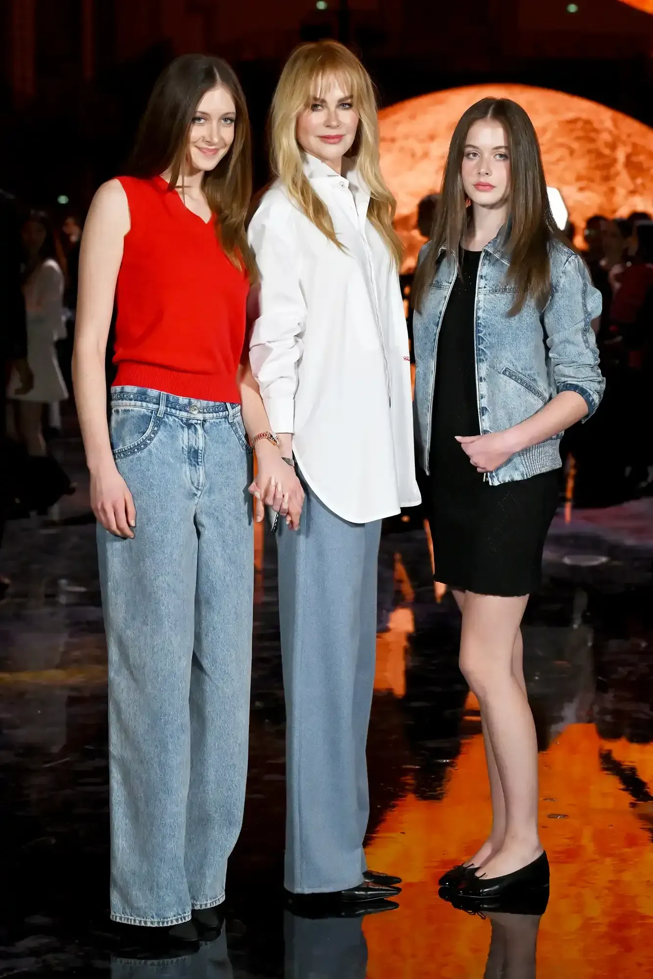 Da esquerda para a direita: Sunday Rose Kidman-Urban, Nicole Kidman e Faith Margaret Kidman-Urban em Paris, em outubro de 2025.