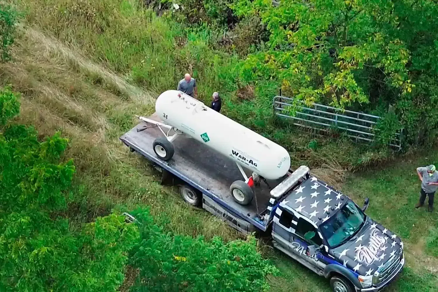 Vista do tanque de fertilizantes onde o corpo de Dee Warner foi encontrado.WTOL